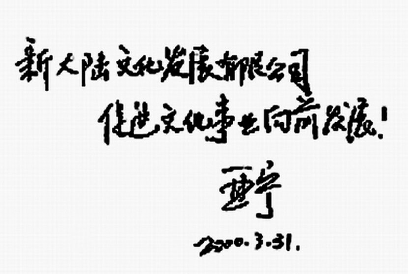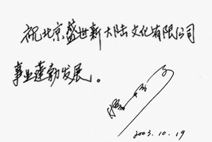 以上为崔健、韩红、李谷一、卢奇、腾格尔、田震、汪峰 、亚宁、杨钰莹、周韶华、高正进为公司题字。